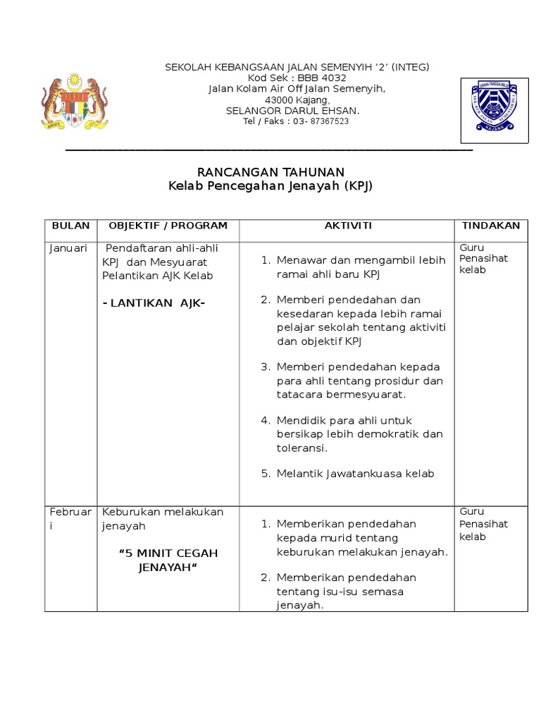 Rancangan Tahunan Kelab Pencegahan Jenayah Pdf